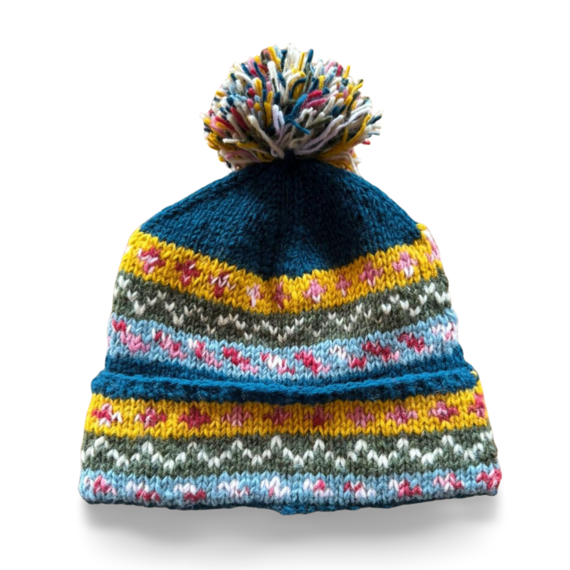Nordic knit style winter hat with a fold-up brim and chunky bobble. This classic design is fleece lined around the ears for added comfort and warmth. Ideal for on-trend winter wardrdobes.
