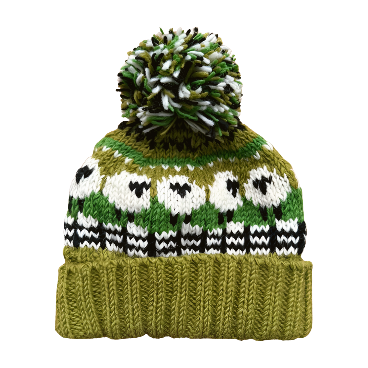 A new variation of our best selling sheep hat, this time with some slightly smaller sheep! This handmade wool bobble hat features a flock of sheep and is available in 2 easy to wear colours, perfect for adding a bit of fun - and some warmth - to your winter outfit!