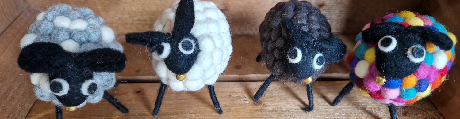 Our handmade felt animals are fairly traded from Nepal. Watch out for sheep, elephants, and more colourful characters in this creative range.