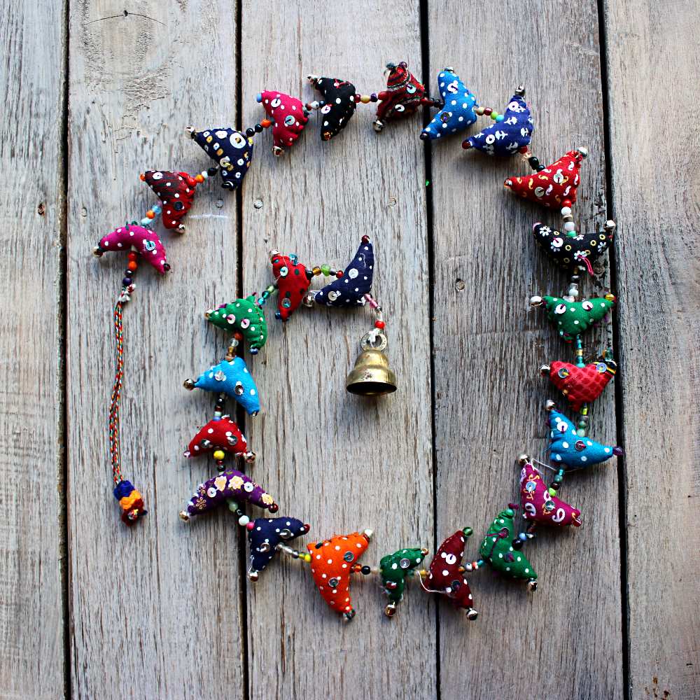 Browse elephants, birds, butterflies and more in this colourful range of traditional Indian hanging decorations. Ideal as an ethical gift, it is said when the 'tota bell' on the end of the string rings it brings good luck!