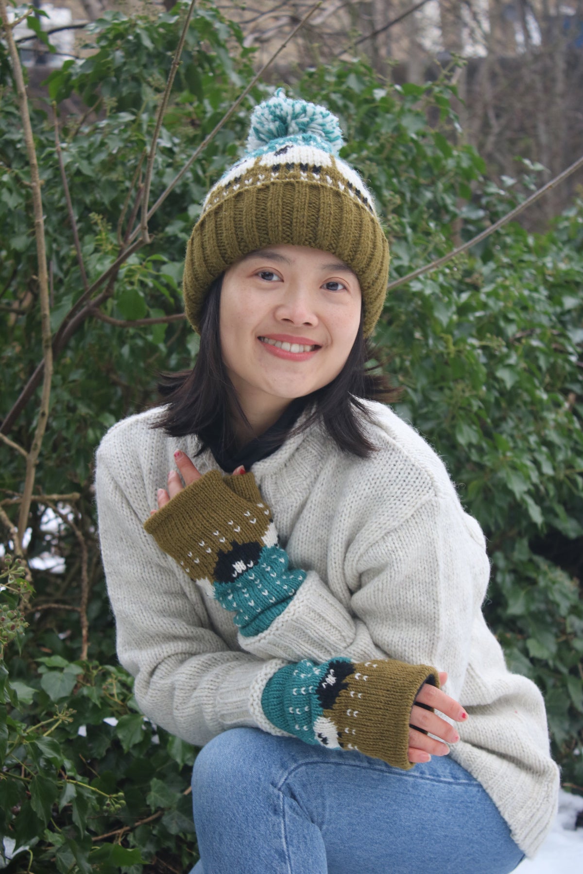 A fairly traded woollen bobble hat with a fun sheep pattern that's set to become a festive favourite! This design is hand-knitted in Nepal, featuring a fleecey lining and a pom pom on top. Available in several eye-catching colours, this seasonal sheep hat makes a perfect gift to yourself or a loved one.
