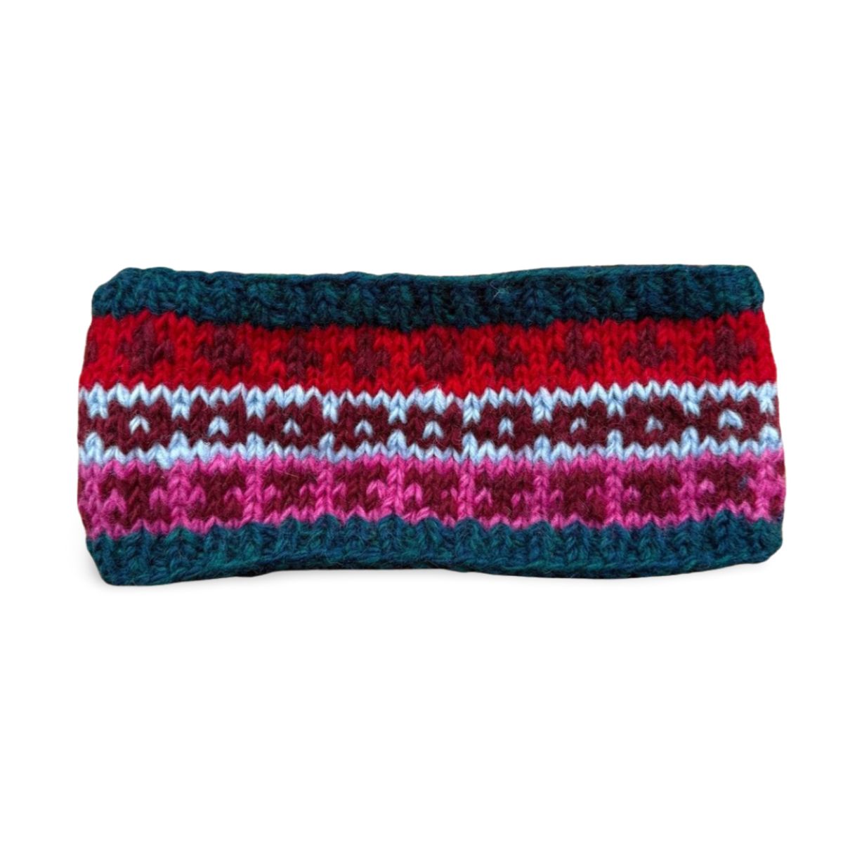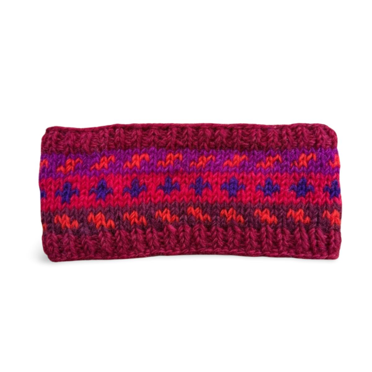 Colourful wool headbands knitted in a nordic design style with a fleece lining. A simple yet stylish headband that's easy to wear and is perfect for when you want to stay warm without wearing a hat. Hand-knitted and fairly traded from Nepal.